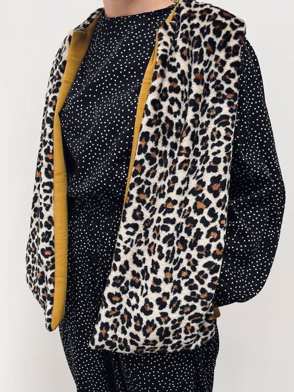 D'un côté, la douceur luxueuse du velours 100% pour une touche d'élégance. De l'autre, l'audace intemporelle de la polaire léopard pour affirmer votre style.